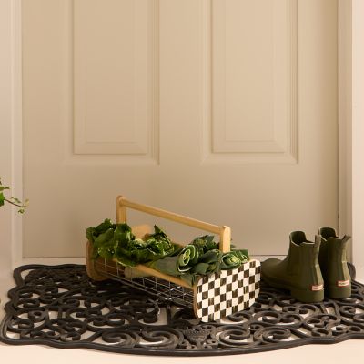 Extend a warm welcome to iconic MacKenzie-Childs style with this rubber door mat, featuring our beloved Mrs. Powers character.