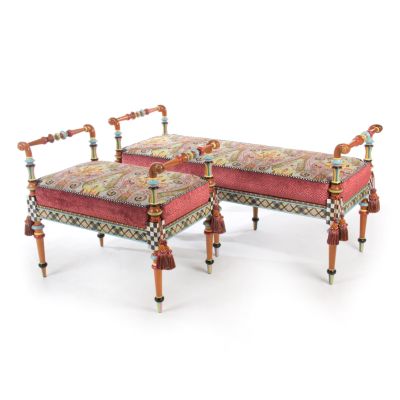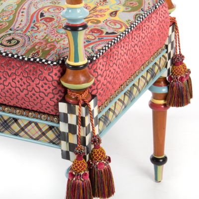 Like a musician tuning up for an evening at a best-kept-secret jazz club, our Musette Collection is a prelude to something spectacular. Underscoring your most treasured evenings, this set of perfectly eclectic furniture and accessories harmonizes a bohemian mashup of velvets and twill, from paisleys to stripes and back again. With hand-painted turned feet and handcrafted tassels.