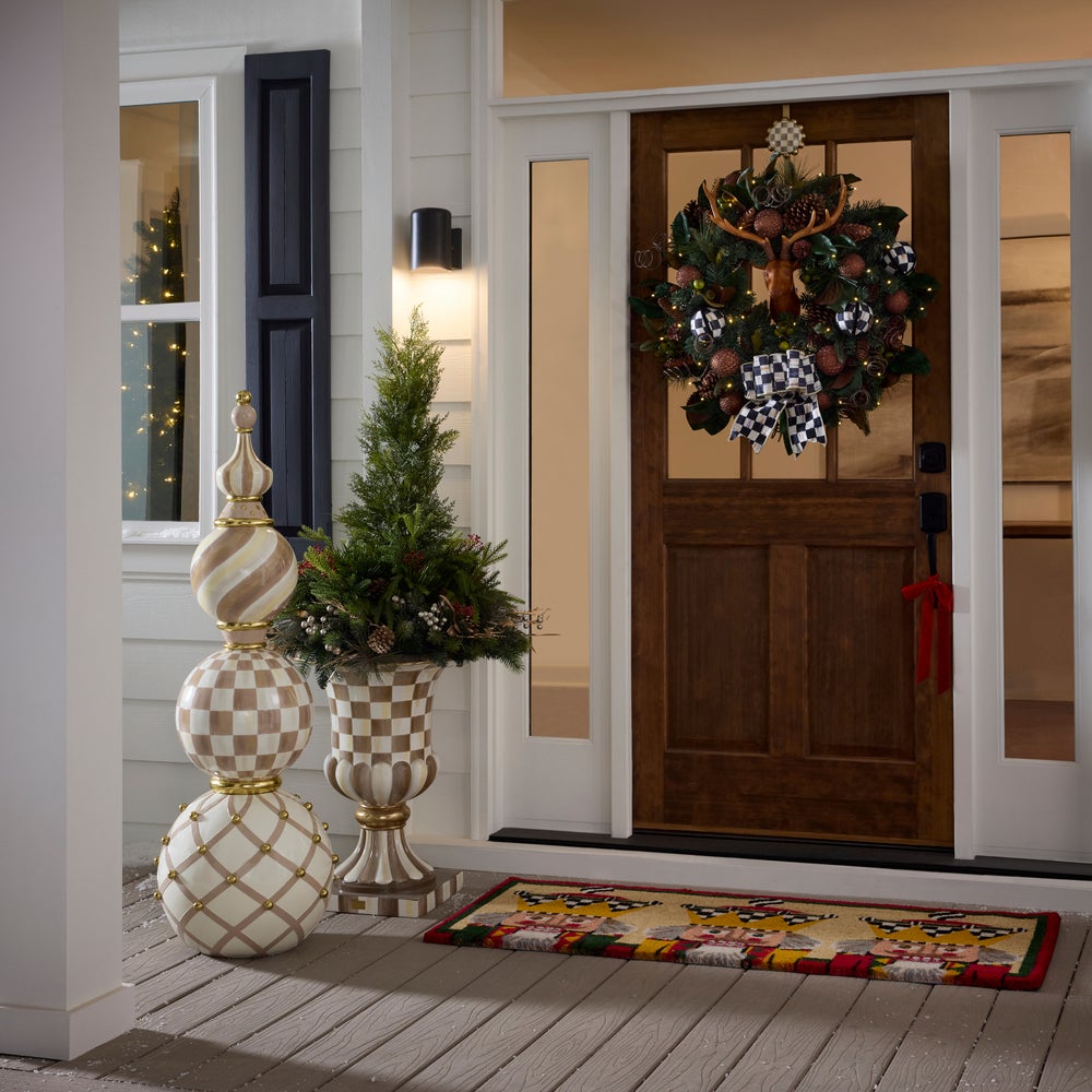 Make a seasonal statement of style before you even open the front door with this printed coir double door entrance mat, featuring a trio of nutcrackers, trimmed with a striped border.