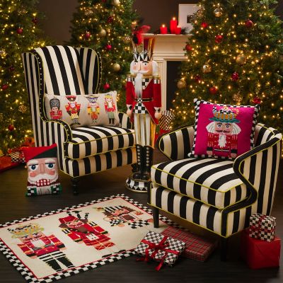 Say welcome home for the holidays with our 3′ × 4′ Nutcracker Rug. This hooked rug, decorated with a trio of nutcrackers and bordered with checks, extends a welcome to your guests before they even step inside.