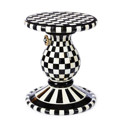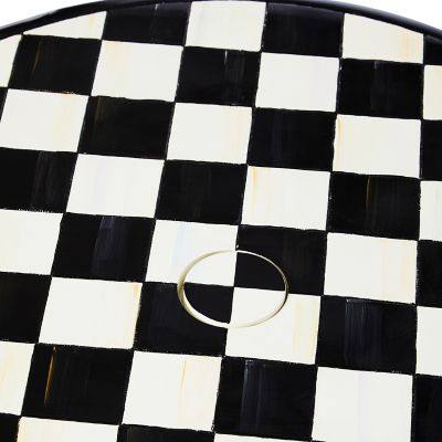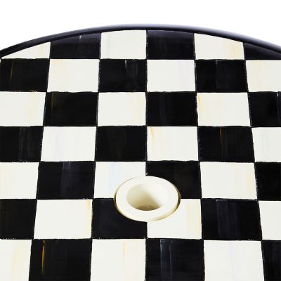 The hand-painted Outdoor Courtly Umbrella Stand Side Table does double duty. It’s a side table perfect for parking your lemonade, plus it holds an outdoor umbrella when the insert in the center is removed. To display, add sand to the base and tighten the knob that resembles our Courtly Check® Round Knob to secure an umbrella into position.