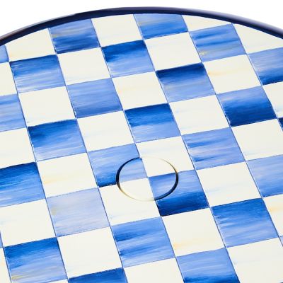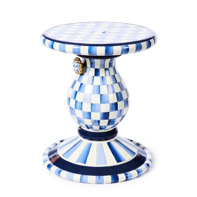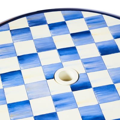 The hand-painted Outdoor Royal Umbrella Stand Side Table does double duty. It’s a side table perfect for parking your lemonade, plus it holds an outdoor umbrella when the insert in the center is removed. To display, add sand to the base and tighten the knob that resembles our Royal Check® Round Knob to secure an umbrella into position.