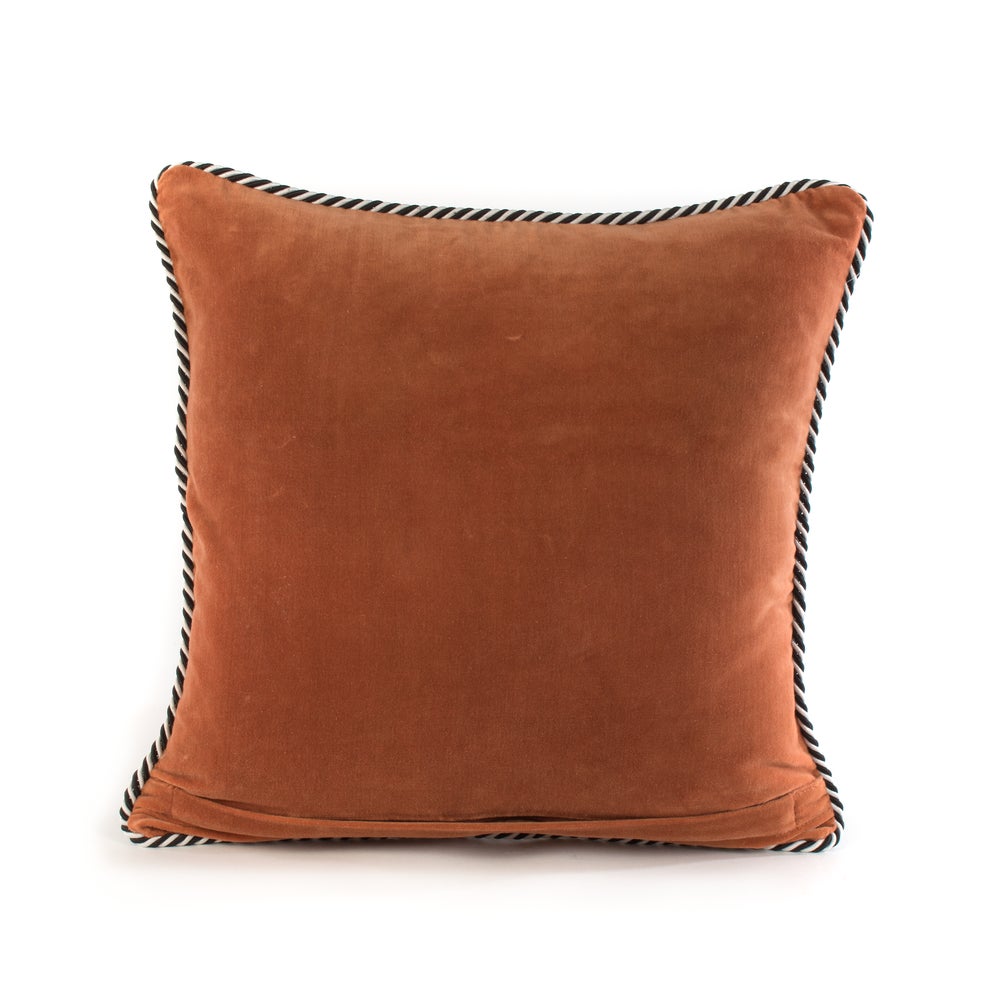 Our Pablo Picatsso Pillow is nothing short of a whimsical work of art and certainly the cat’s meow. Featuring a feline artist embellished with embroidery, chainstitching, and beading on a background of denim and faux leather, it’s finished with twisted black and white cording.