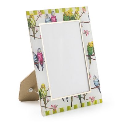This 5″ x 7″ frame is the picture-perfect way to display memories, featuring a print of parakeets under glass and a gold-foil picture window, bordered with color-dragged chartreuse checks.