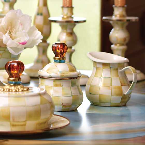 Heavy-gauge, hand-glazed steel underbody with hand-painted Parchment Checks. Pieces may vary due to the handmade nature of each product. Imported.
