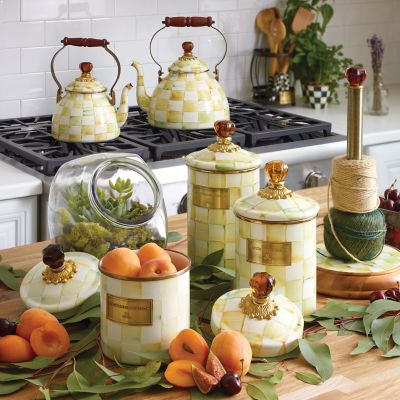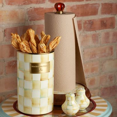 Every kitchen needs a Parchment Check™ Wood Paper Towel Holder! Hand-painted checks on enamel, with wood base, stainless steel center post, and glass finial.