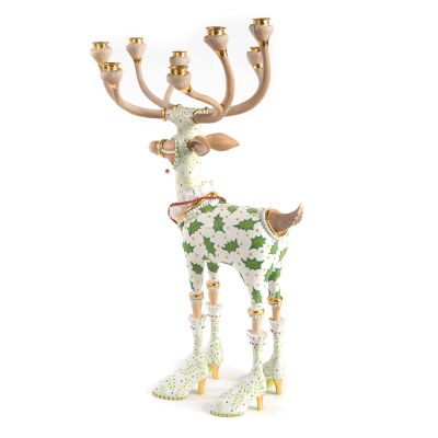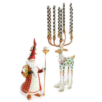 Dash Away, inspired by the Christmas classic “’Twas the Night Before Christmas,” features Santa’s eight reindeer ready to take flight around the world, assisted by their delightfully dedicated elves, Santa, and Mrs. Santa. The Patience Brewster Dash Away Vixen Reindeer Candelabra is a breathtaking centerpiece for your table, all spruced up and ready for the candles of your choice. Vixen is decorated with finely detailed painting, a perfectly ruffled neckline, gold leaf, and two beaded necklaces. Vixen coordinates with Dash Away Nicholas Santa Candle Holder.
