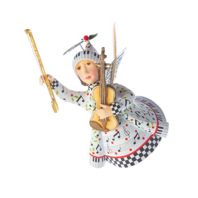 Is there an angel in your life? Someone who has a perpetual song in her heart? Celebrate her with the handmade and hand-painted Patience Brewster Music Is Paradise Angel Ornament. This angel holds a violin in her hands and wears a coat and hat decorated with musical notes and piano keys.