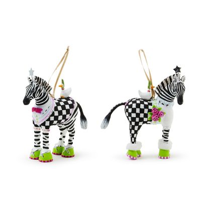 The Patience Brewster Noah’s Ark Zelda & Zeke Zebra Figurines are ready to hop aboard the Patience Brewster Noah’s Ark. This hand-painted pair is decorated with lots of details, from their whimsical boots to the stars on their headdresses. And yes, each has a goose riding on them!