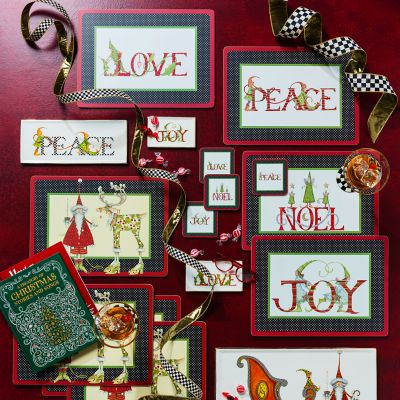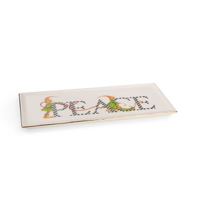 Express the sentiments of the season with the handmade and hand-painted ceramic Patience Brewster Peace Trinket Tray. Featuring Patience’s illustrations of whimsical elves, its edges are accented with gold lustre. Pair it the Joy & Love Trinket Trays to make a delightful display.