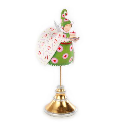 Is there a sweet angel in your life? Someone whose love and compassion makes every day soar to new heights? Celebrate her with the Patience Brewster Sweets Paradise Angel Figure. Displayed on a gold-leafed base accented with holographic glitter, she’s wearing a coat decorated with cups and spoons and holds a delicious confection.
