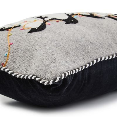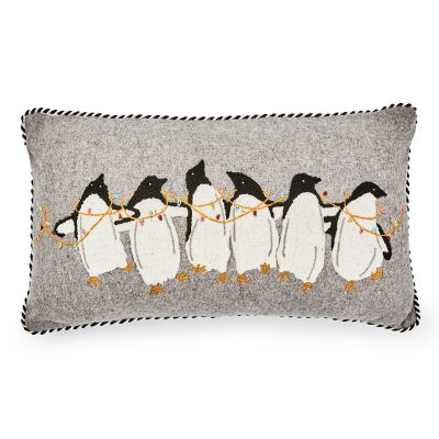 Add comfort and joy to your holiday home with this lumbar pillow, featuring penguins done in chenille embroidery, accented with beads, and finished with twisted black and white cording.