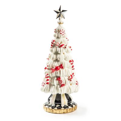 Deck the tabletops with this battery-powered illuminated tree decorated with faux frosting and peppermints and topped with a dimensional star done in Courtly Stripe.