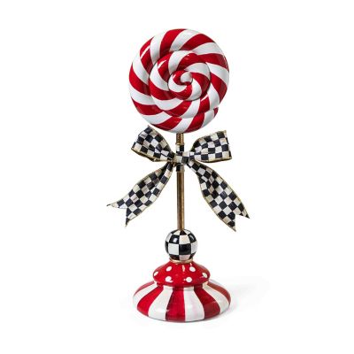 Deck the tabletops with this small peppermint lollipop topiary decorated with red swirls and standing on a base of stripes and dots. It’s trimmed with a Courtly Check® ribbon bow.