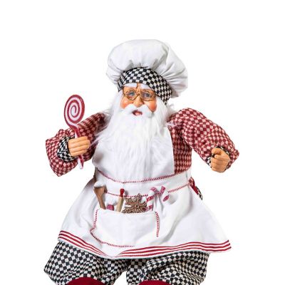 Delight in the details of our handmade and hand-painted, sitting peppermint Santa. Dressed in red checks and Courtly Check®, he wears an apron with cooking utensils in his pockets.