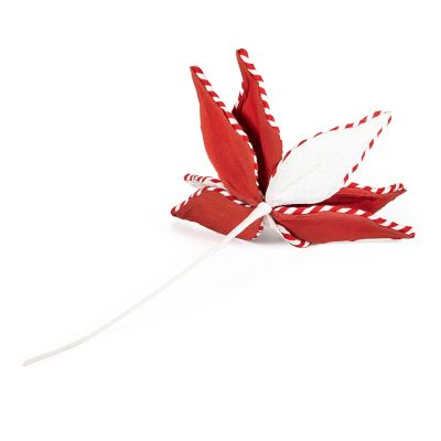 Add delightful dimension to the Christmas tree or a wreath with this jumbo flower stem decorated with petals of red stripes and Courtly Check® and finished with glittered berries.