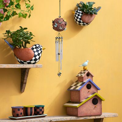 The Persephone Tabletop Bird House is home tweet home for birds of a feather. Made of resin with a terra cotta finish, it features hand-painted Courtly pattern details.