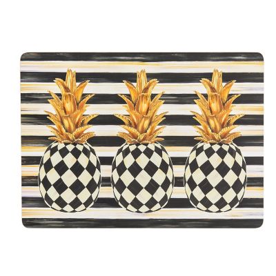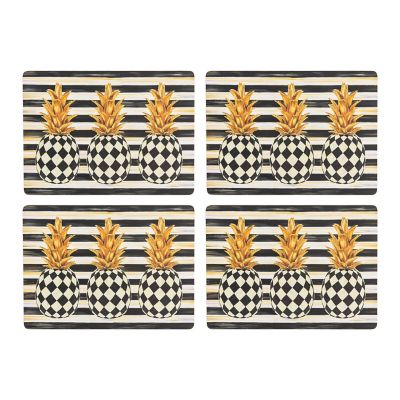 Top your table and keep surfaces clean and protected with this set of four heat-resistant, natural cork back placemats, featuring our Marquee Pineapple pattern atop Courtly Stripe.