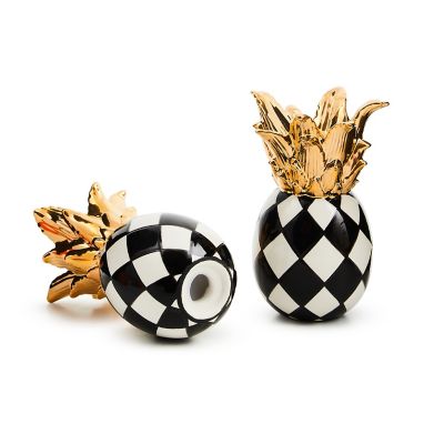 Sure to make your table fresh and fun, the hand-painted ceramic Pineapple Salt & Pepper Set features a pair of pineapples with gold lustre accents that hold salt and pepper. Presented in a beautiful gift box, it makes an ideal gift for the salt and pepper shaker collector, who might also happen to be your favorite hostess or host.