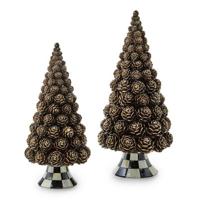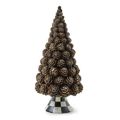 Add autumn elegance with this short pinecone tree, made of resin, atop a base of Courtly Check®.