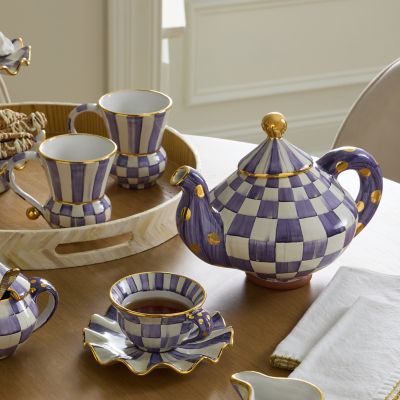 The Plum Check Ceramic Teapot is a chubby charmer that’s as cozy as chamomile in the company of friends. Handmade and hand-painted in a range of plum hues, it’s trimmed with gold lustre and stamped by the Aurora artisans involved in its creation.