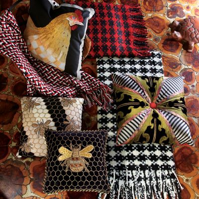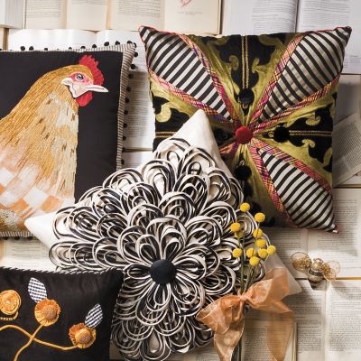 Inspired by the fabulous, famous London marketplace, our Portobello Road Square Pillow is bursting with rare-find charm. Featuring damask florals and stripes in black, white, and gold, and trimmed in pomegranate plaid, this artfully composed accent is sure to be party to the most entertaining conversations.