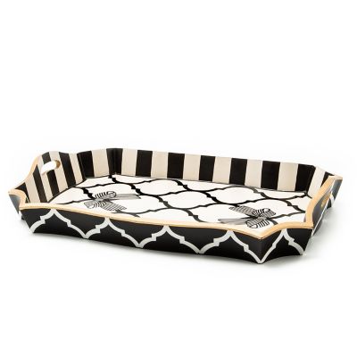 Pretty and practical, you can serve stylishly on our Large Pretty as a Bow Tray. Featuring our Pretty as a Bow pattern, this hand-painted wooden tray is trimmed with a scalloped edge. Serve beverages on it or use it in the home office to hold your important papers