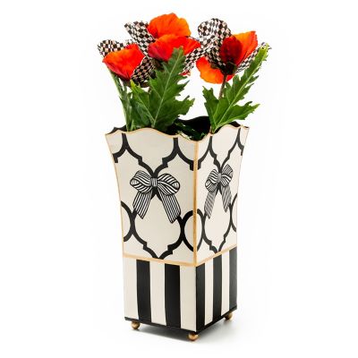 Give your flowers a place to blossom in the Pretty as a Bow Vase. Made of toleware, it’s hand-painted with our Pretty as a Bow pattern and includes a removable glass insert to hold water and fresh flowers.
