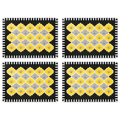 Top your table with our set of four Queen Bee Cork Back Placemats. The heat-resistant lacquered surface features a buzzing Queen Bee art print on hard-board substrate that is backed with natural cork.