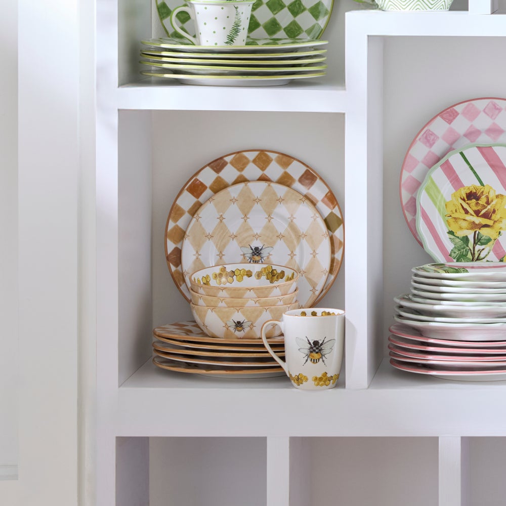 Set a table fit for royalty with our Queen Bee Dinnerware. Designed for everyday use,�it’s�finely crafted�from durable made-in-Portugal�stoneware that’s both dishwasher- and microwave-safe, decorated with hand-applied transfers, and finished with hand-painted rims.�Pair with other pieces from our Queen Bee collection or iconic Courtly Check silhouettes for a tabletop that’s buzzing with style!