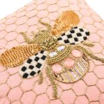 Set a sofa fit for royalty with our Queen Bee Pink Throw Pillow. Features an intricately detailed bead and sequin honeybee design on a blush pink background.