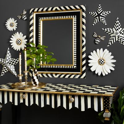 The ceramic Queen Bee Vase displays florals with style. Decorated in a modern black and white hive pattern, trimmed with gold lustre, it’s embellished with a pair of golden buzz-worthy bees.