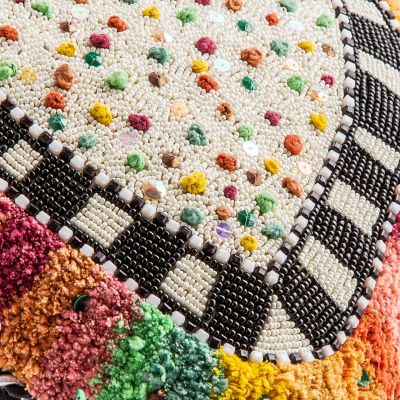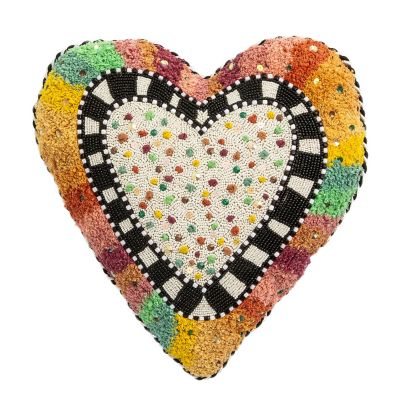 Inspired by our Rainbow Fluted Heart Plate, this pillow brings pride and joy into your home, featuring a beaded heart in the center, outlined in chenille rainbow stripes, and trimmed with black and white twisted cording.