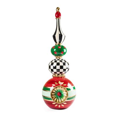 Greet guests with this weather-resistant ornament topiary, featuring a stack of hand-painted, weather-resistant red and green ornament shapes, accented with Courtly patterns. For a stunning statement, indoors or outdoors, place it in our hand-painted Courtly urns.