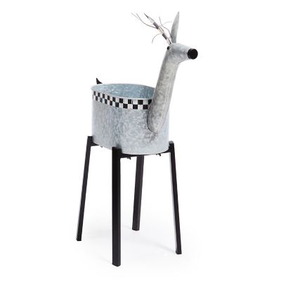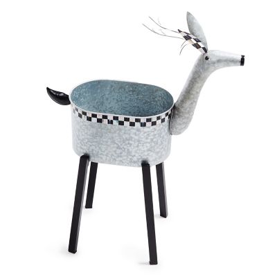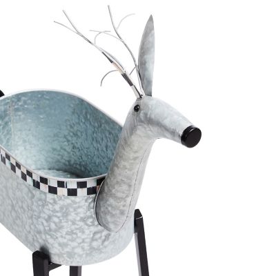 This galvanized metal reindeer planter is perfect for a holiday arrangement. It sits on black iron legs with Courtly Check® around the top and on the ears.