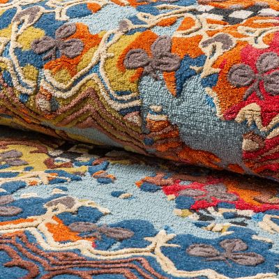 Vacuum regularly to preserve original sheen. Stains may be spot cleaned or taken to a professional rug cleaner. Do not pull loose ends; clip with scissors. Color fading can occur if exposed to direct sunlight for an extended period of time. We recommend a rug pad and rotating the rug at least once a month. Not machine washable.