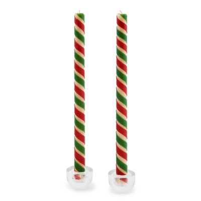 This set of two hand-rolled, beeswax-blend dinner candles sets the scene for the holidays, featuring a hand-applied red and green ribbon pattern.