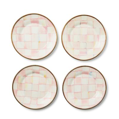 Tapas? Noshes? Tasty treats? The slightly smaller silhouette of this set of four Rosy Check Appetizer Plates offers warm, inviting, glossy checks, hand-painted in a range of rosy hues.