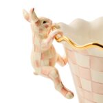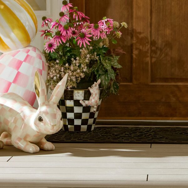 Our Rosy Check Funny Bunny Pot Climber is one curious critter. Hand-painted in our signature Rosy Check pattern and finished with gold leaf ears, this little guy can hang off the edge of your planters indoors or out for that extra springtime touch.
