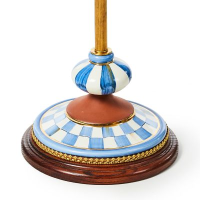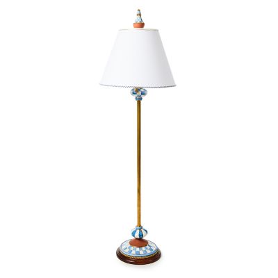 From its bold ceramic base to its sculpted finial, the Royal Check® Atelier Floor Lamp enlightens every room. Handmade and hand-painted in Aurora, New York, it’s topped with a hardback shade, featuring braided trim at the bottom. Tasseled pulls turn the lamp on and off.
