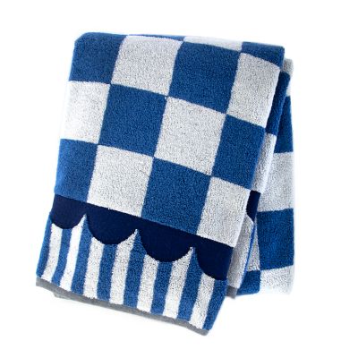 Ready to make a splash? Our Royal Check Bath Towel, made of 100% cotton terrycloth, features blue and white checks, trimmed with a striped border. Give your bath an instant makeover and turn scrubbing up into something spectacular.