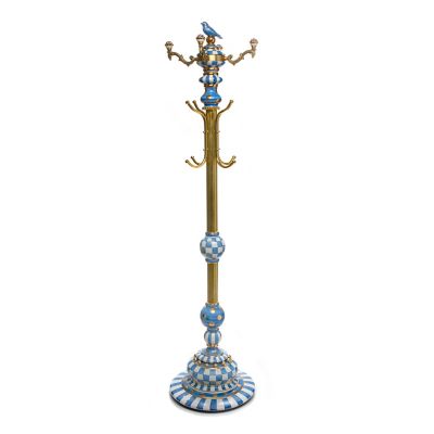 Sure to make a statement in your entry or mudroom, the Royal Check Coat Perch is pretty and practical. It’s completely handmade by our artisans in Aurora, New York, featuring three levels of hooks, hand-painted Royal Check details, 22K gold lustre accents, and is crowned with a ceramic bird on top.
