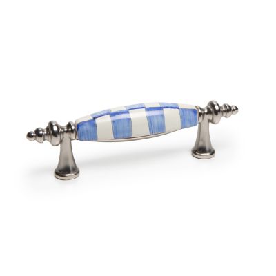 Add the finishing touch of MacKenzie-Childs to furniture and cabinets with our Nickel Royal Check Drawer Pull. This handsome nickel-finish metal handle features hand-painted ceramic Royal Check on the center spread. Mounting hardware is included.