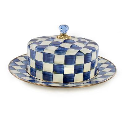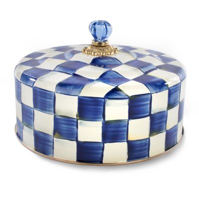 Draped from top to bottom in our color-dragged Royal Checks, the Royal Check Cake Carrier is sure to make an impressive entrance at your next potluck dinner. The steel underbody is hand-painted with color-dragged checks in a range of blue hues with a faceted blue glass knob on top. Not just for cakes—everything from cookies to hors d’oeuvres (or even a special present!) can be wrapped up, transported, and presented in the casual-but-clearly-dramatic elegance of this cake carrier.