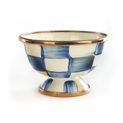 Dainty only in size, our Royal Check Enamel Little Sugar Bowl makes even the smallest celebrations big on MacKenzie-Childs style. The petite companion to our Royal Check Little Creamer, the sugar bowl is hand-painted with checks in a range of blue hues on a heavy-gauge, hand-glazed steel underbody.