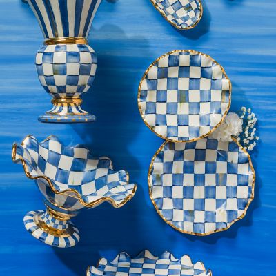 Just the excuse you need to whip up a batch of your secret-recipe macaroons. The rippling gold-lustred edge of our Royal Check Fluted Dessert Plate perfectly complements the hand-painted pattern for a design that is timeless and modern, formal and still fun. Make dessert a real treat, with plates that are golden-edged and gorgeous. A beautiful juxtaposition of blue hues, our deceptively simple signature checks reveal an intricate spectrum of jewel-toned colors. Handmade, fired, glazed, fired again, hand-painted, embellished with lustre, and fired again, each piece is stamped by the artisans involved in its creation. Each piece of Royal Check reflects the artisan’s hand, so no two are exactly alike, although they all work together in perfect harmony.