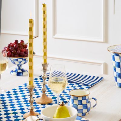 A lovingly prepared meal? Check. The very best company? Check. Perfect table runner? Royal Check! Dress your sideboard in a cotton/linen blend that captures our blue signature pattern so well it almost looks hand-painted. Bordered on ends with a complementary Royal Stripe band and trimmed with blue piping. Reverses to blue cotton duck.