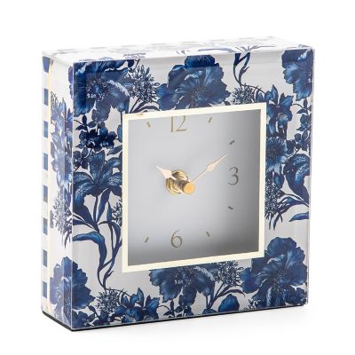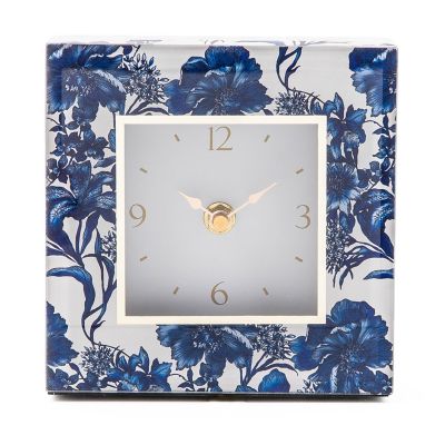 Make time for sophisticated style. This compact clock features a blue floral pattern printed under glass, accented with beveled edges.