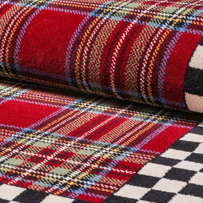 This wool-blend 7’11″ × 10’ red tartan rug is woven in Scotland, using the Axminister method, which is known for superior durability that comes from interweaving the pile and backing.