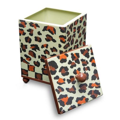 Store cotton balls and other bathroom essentials in style. Our Serengeti Boutique Cotton Box is made of toleware and hand-painted with a fun pattern of animal spots and checks. Add our matching Small Serengeti Tray, Soap Dispenser, and Tissue Box Cover for a fresh look that’s a little on the wild side.